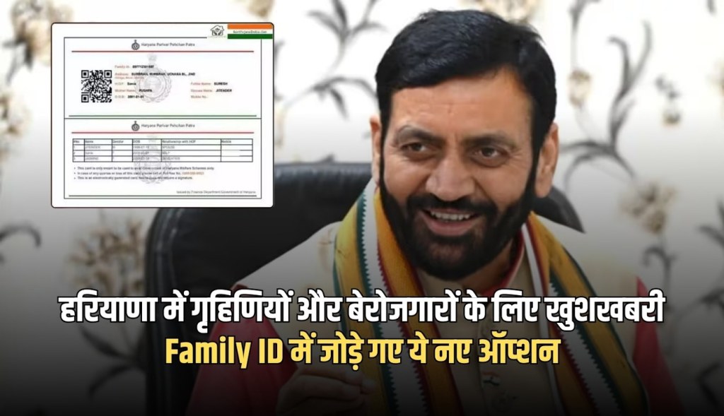 Haryana Family ID: हरियाणा में परिवार पहचान पत्र (PPP) एक जरूरी दस्तावेज बन चुका है। सरकार ने Family ID में नया ऑप्शन जोड़ा गया है। खासतौर पर गृहिणियों और बेरोजगार युवाओं को ...