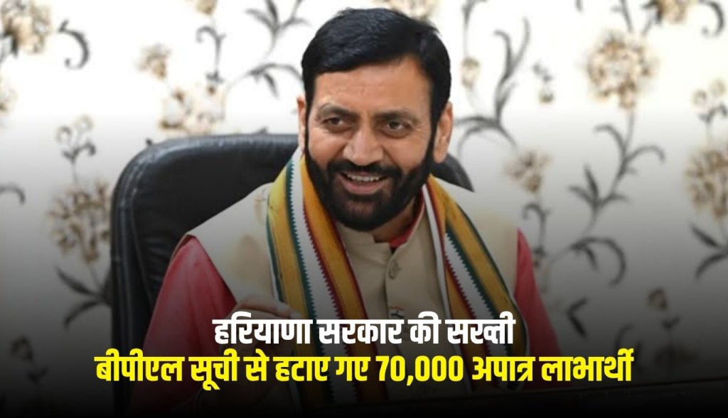 Haryana BPL Card: हरियाणा सरकार ने राज्य में पारदर्शिता और सामाजिक न्याय को बढ़ावा देने के लिए एक बड़ा कदम उठाया है। राज्य के खाद्य, नागरिक आपूर्ति एवं उपभोक्ता मामले ...