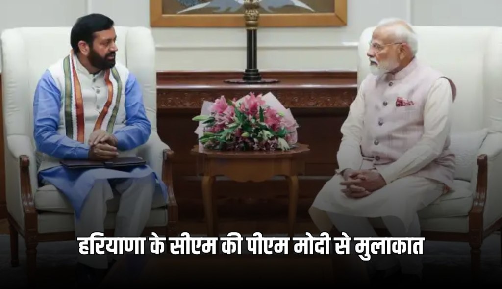 CM Saini Met PM Modi: हरियाणा के मुख्यमंत्री नायब सिंह सैनी ने गुरुवार को नई दिल्ली में प्रधानमंत्री नरेन्द्र मोदी से मुलाकात की है। खबरों की मानें, तो सीएम सैनी ...